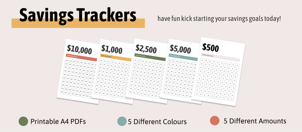 These printable trackers will help you stay motivated to save up for your goals - whether it's for a holiday, house deposit or present for yourself, this tracker will help you stay accountable to your goals.